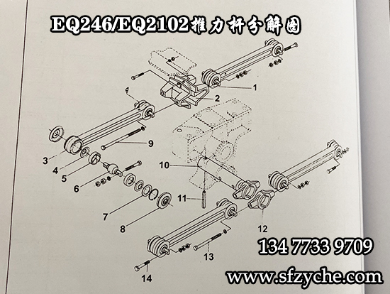 EQ246、EQ2102系列東風六驅平頭軍車推力桿圖片及配件型號: