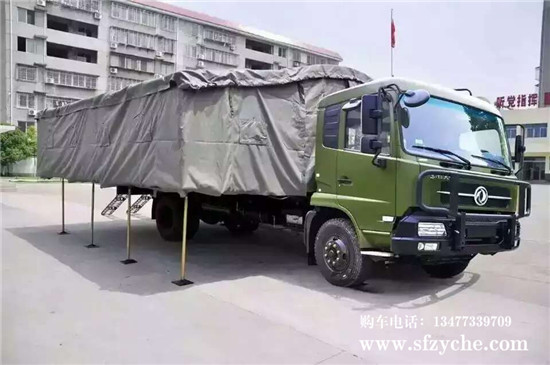 東風(fēng)原廠EQ5118XZS6D15型宿營車和EQ5120GA1型天錦宿營車6.1米篷布配套直供。適用于東風(fēng)EQ5118XZS6D15宿營車和EQ5120GA1天錦宿營車等東風(fēng)系列車型,軍用宿營車供部隊(duì)野外住宿使用。車箱內(nèi)部尺寸6100mmX2210mmX1850mm。宿營車車廂在采用折疊式雙邊板,增加滑道內(nèi)設(shè)支撐桿,可拆式帳篷。平時(shí)可作為普通高欄板軍車使用;部隊(duì)需野營時(shí),放平雙邊板并支撐好,搭好帳篷,就可以形成一座面積達(dá)38㎡的高臺帳篷,可供36人住宿用。 東風(fēng)原廠宿營車篷布總成價(jià)格一套為5300元含稅。