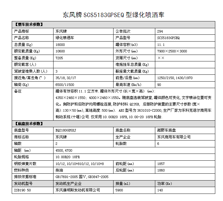 SCS5183GPSEQ四驅(qū)多功能越野灑水車,不但具備灑水車的各項功能(如灑水,運水,綠化,保溫,抑塵等),并可用以運送飲用水或用于緊急消防等用途,是軍用的理想用車。主要特點是前后橋同時驅(qū)動,俗稱前后加力,康明斯發(fā)動機動力,東風(fēng)全驅(qū)系統(tǒng),越野通過性好,操縱方便,性能卓越,產(chǎn)品適用于地質(zhì)勘探、油田作業(yè)、公路建設(shè).線路維護、礦山救護、水利水電、維和部隊和軍隊等特殊行業(yè),是野外和惡劣路況條件下運輸和作業(yè)的理想裝備。