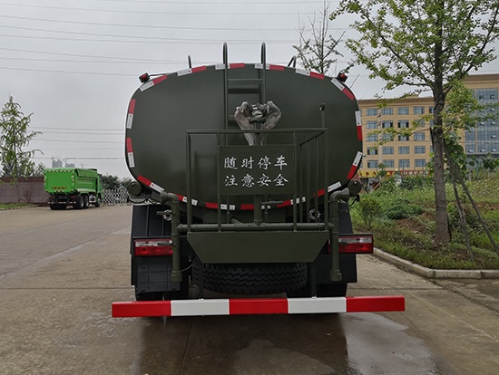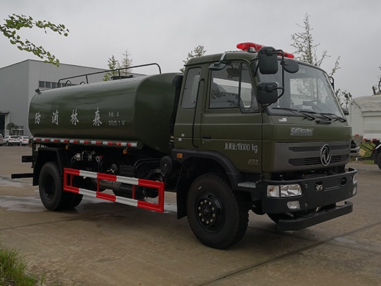 采用東風(fēng)EQ2180GD5DJ型越野汽車(chē)底盤(pán),東風(fēng)一排半寬體駕駛室,4×4驅(qū)動(dòng),康明斯ISB190 50國(guó)五發(fā)動(dòng)機(jī),六檔變速箱,東風(fēng)商用車(chē)橋,前驅(qū)動(dòng)橋3.8噸,后橋10噸,10.00R20輪胎,軸距4500mm,電動(dòng)玻璃,方向助力,斷氣剎,ABS。罐體采用優(yōu)質(zhì)碳鋼QB235板材,板材厚度4mm,罐體容積11.1立方,變速箱安裝取力器,大功率水泵可泵進(jìn)泵出,后置工作平臺(tái)帶水炮射程25米,消防栓接口左右各一個(gè),選裝駕駛室頂部安裝長(zhǎng)條警燈帶喊話(huà)器,全車(chē)顏色軍綠,兩側(cè)噴涂白色森林消防字樣。