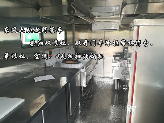 東風六驅(qū)越野餐車車輛概述:采用東風國五越野底盤改裝, 車廂材質(zhì)采用外冷軋鋼板,內(nèi)飾不銹鋼,中間保溫層,隱藏式上車踏步,頂部安全窗,兩個副食灶,一個蒸飯車,抽油煙機,平冷柜,水路,電路,油路等。